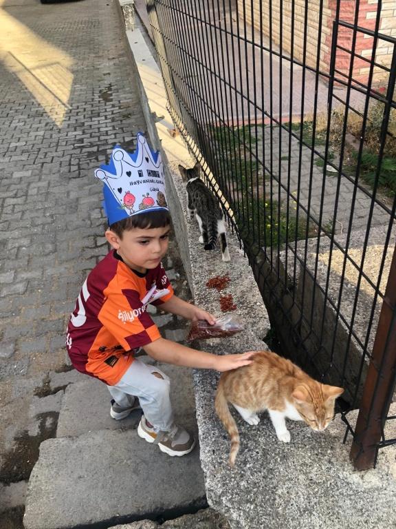 Sokak kedileri ve kuşları besleyerek onların bakımına destek oldu,