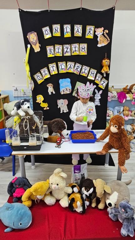 Sınıf içinde Hayvanları Koruma Günü ile ilgili bilgilendirici sunumlar izledi,