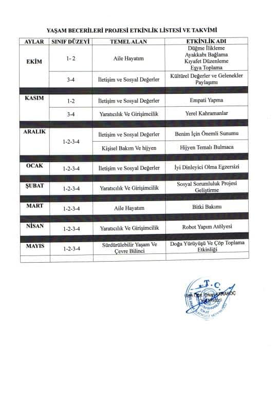 Bu doğrultuda öğrencilerin öğrenme serüveninde toplumla bütünleşmesi, günlük yaşam becerilerini edinerek bilinçli, verimli ve planlı bir yaşam sürmeleri, toplumla sağlıklı bir bağ kurmaları ve toplumsal hayata etkin katılım sağlamaları amacıyla Temel Eğitim Genel Müdürlüğüne bağlı ilkokul ve ortaokullarda "Yaşam Becerileri Projesi" uygulanacaktır. Okul temelli esnek bir yaklaşımla, çevrenin ihtiyaçlarına göre şekillendirilecek proje faaliyetleri ile öğrencilere bilinçli, verimli ve planlı bir yaşam sürmeleri için gerekli temel beceriler kazandırılacaktır.